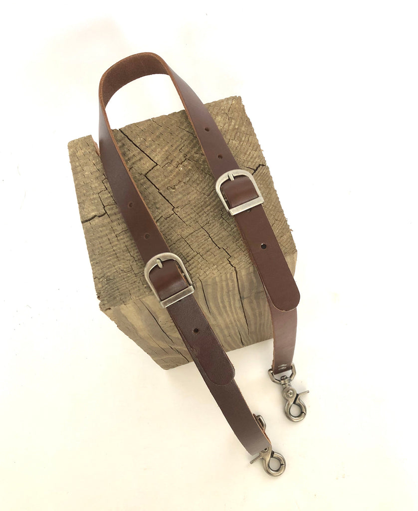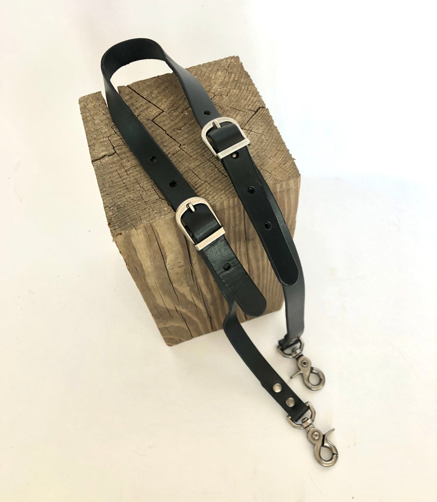 A 1/2” wide double buckle strap. Adjusts 36”-46”