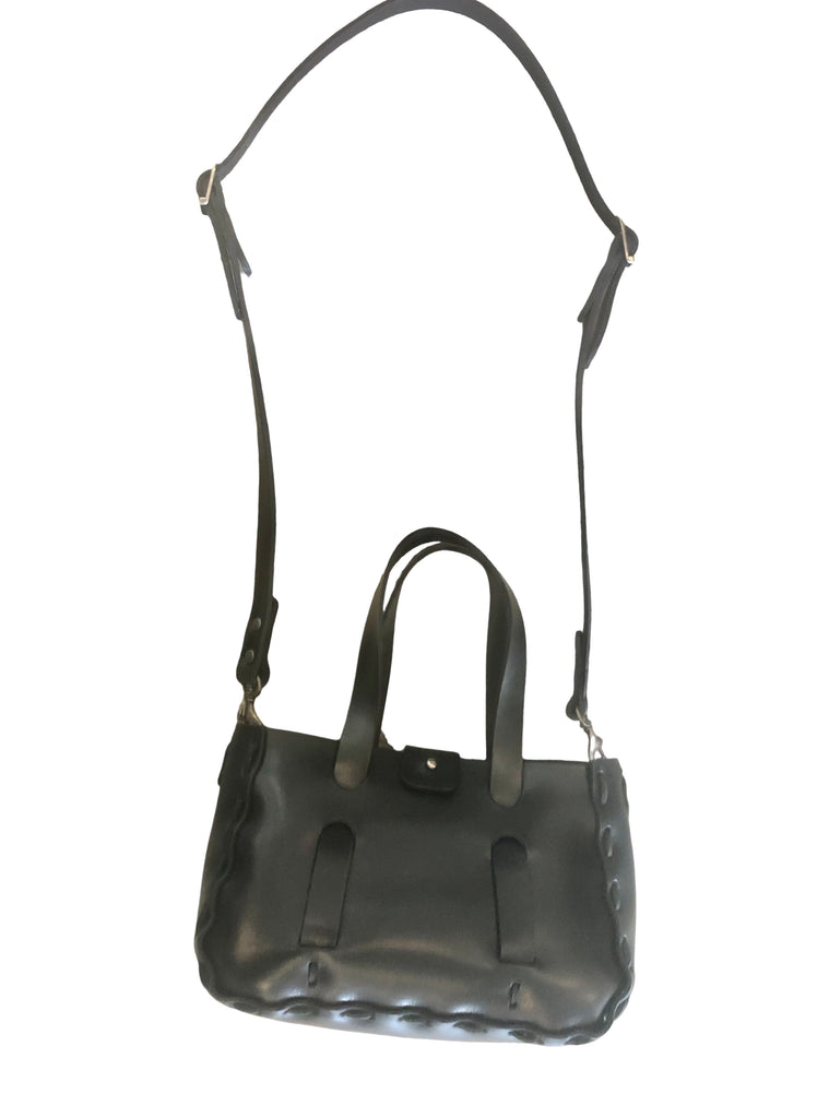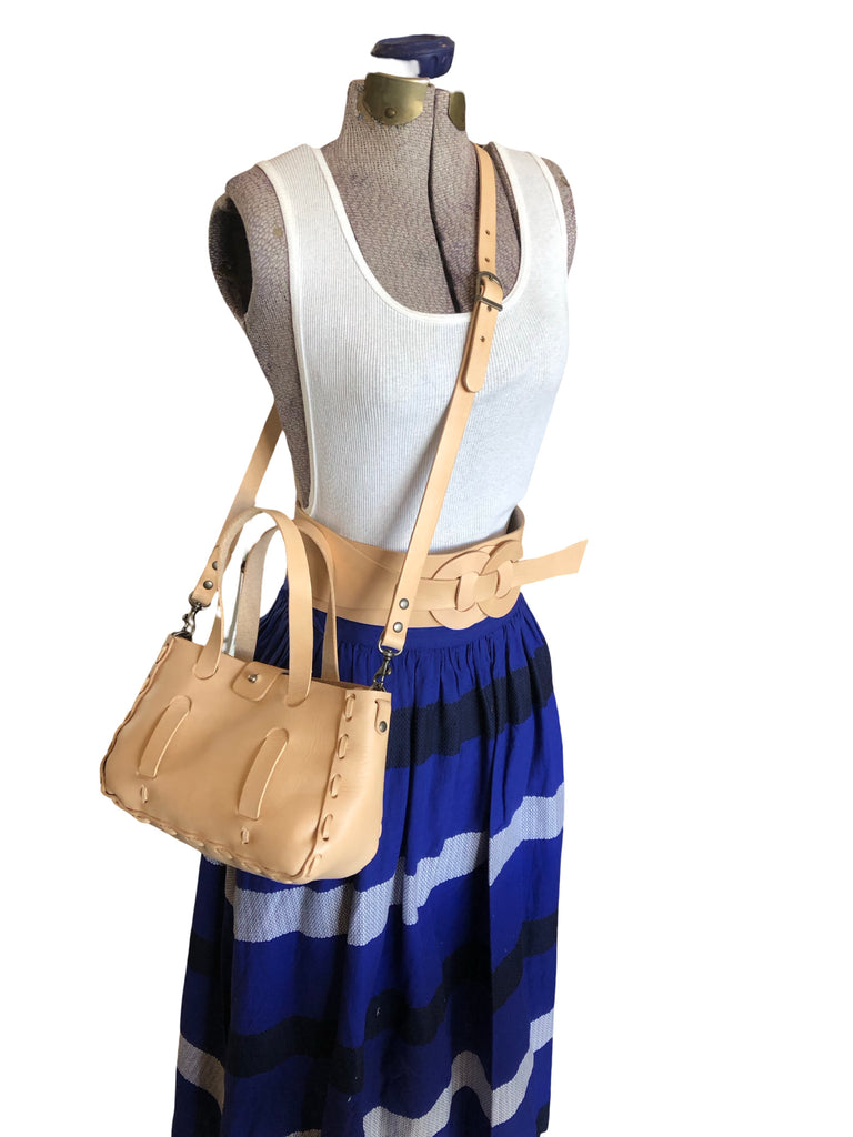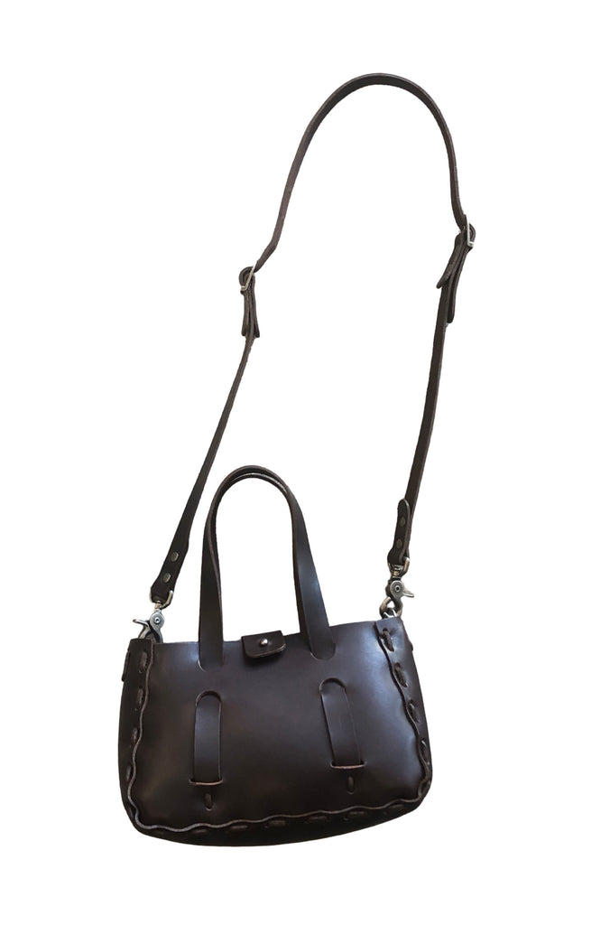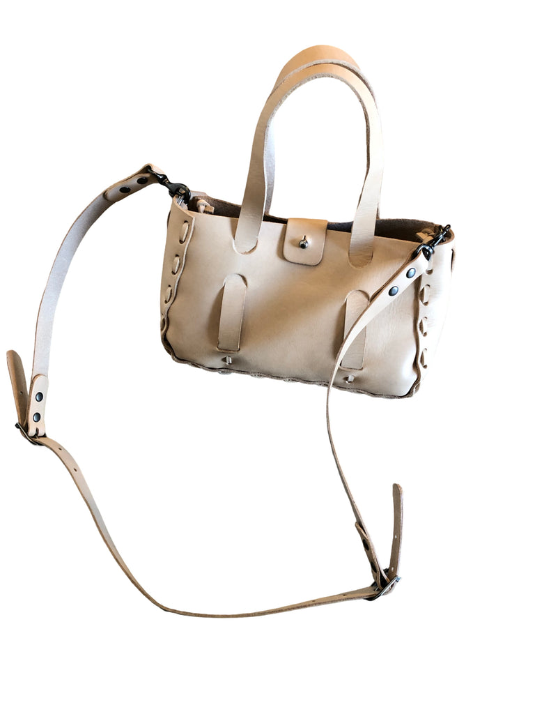A ‘mini’ version of the original whipstitched tote. Inspired by the handcrafted bags of the early 1970’s. Hand cut & hand-stitched latigo leather. Made to use & to last. W/crossbody strap
