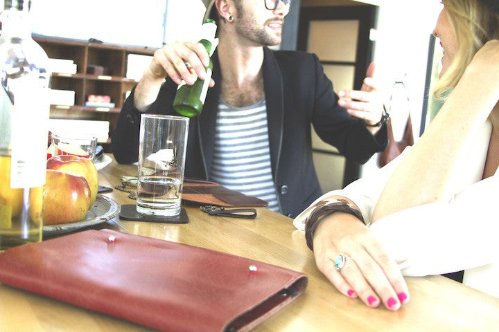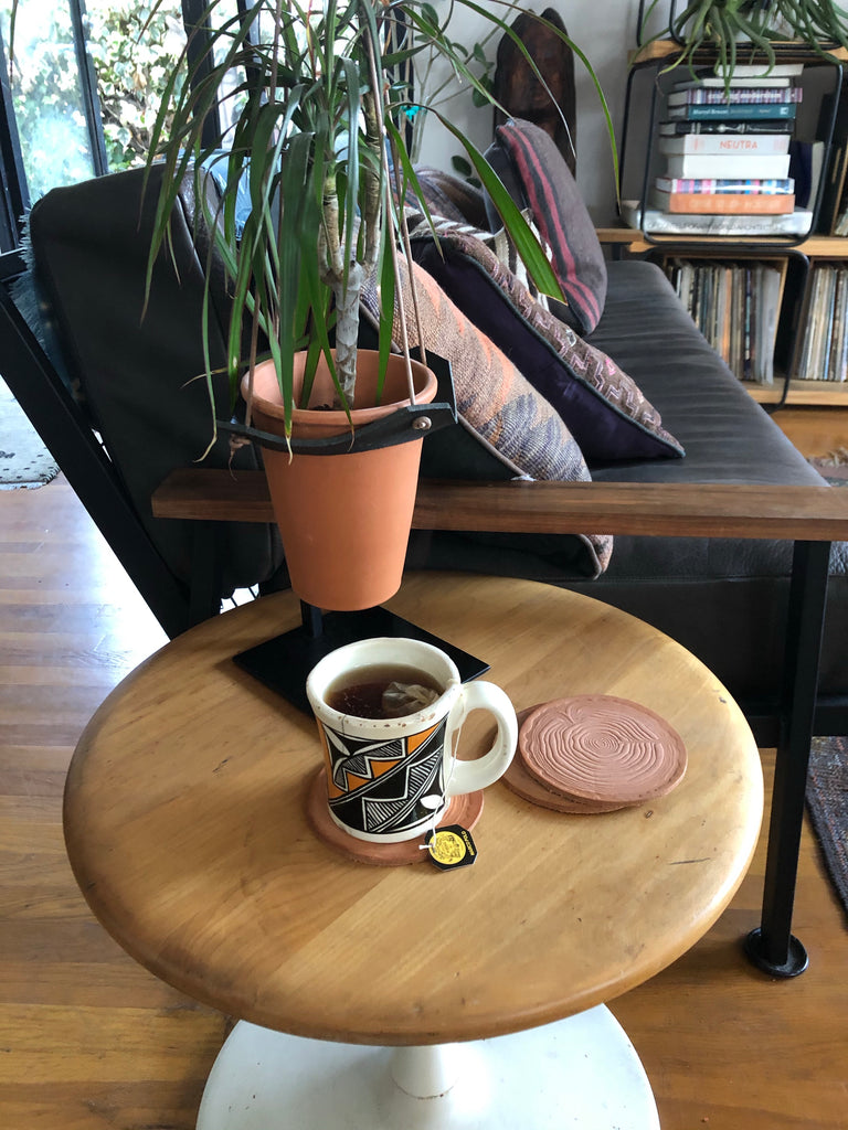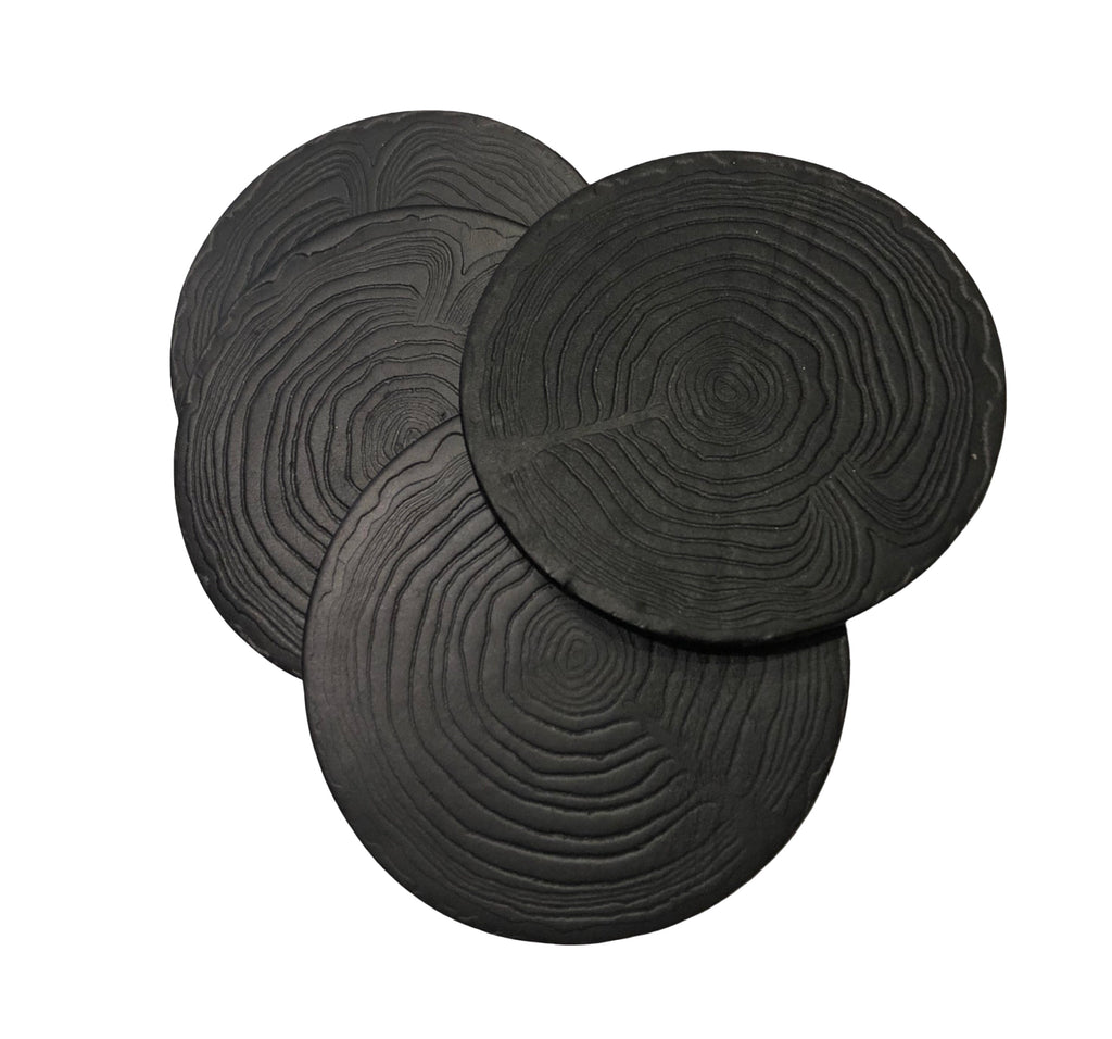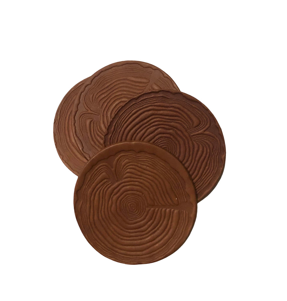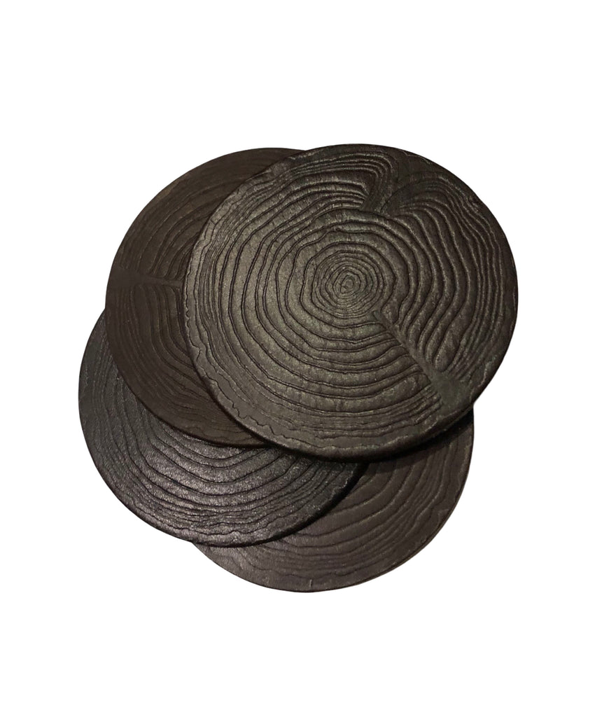Embossed coasters made from heavy latigo leather. Embossed in wood grain or inverted pyramid pattern.