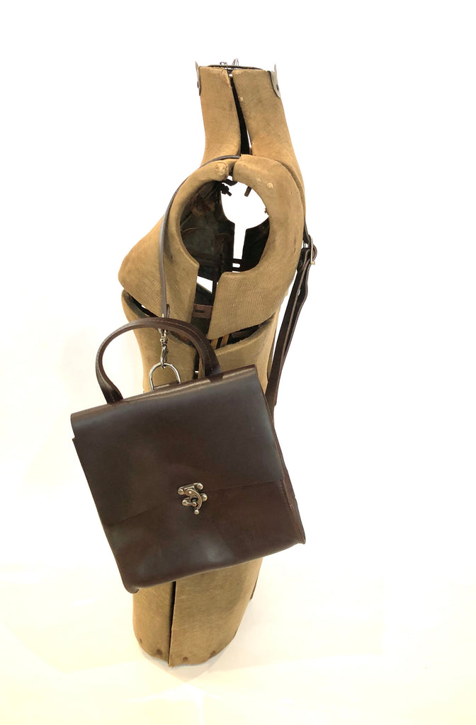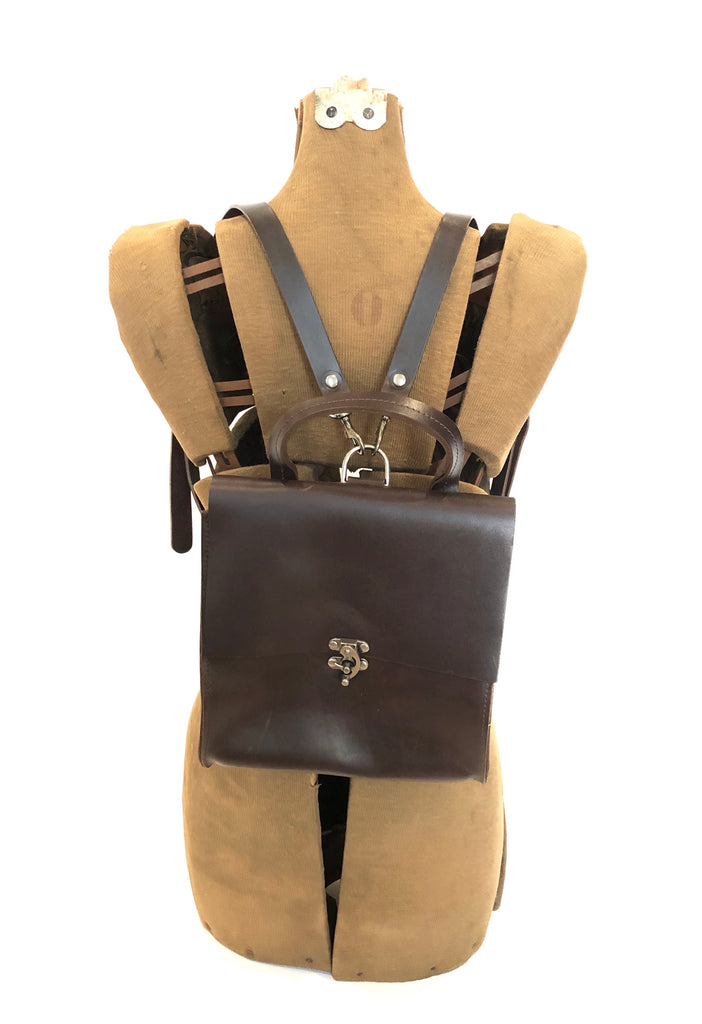 A medium sized convertible backpack. Straps can detach to be used as a handbag. Roomy interior with one pocket. 8x8x4 1/2"