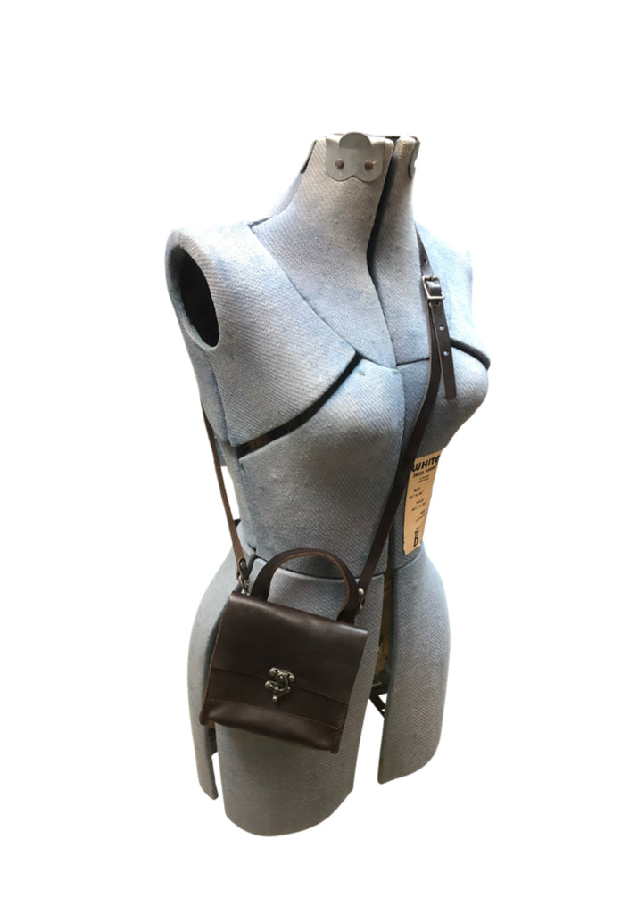 A mini version of the B39 backpack. 6x5” inches with one interior pocket. Detachable 1/2” wide strap
