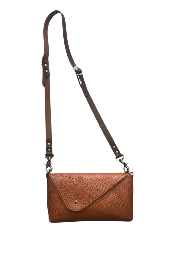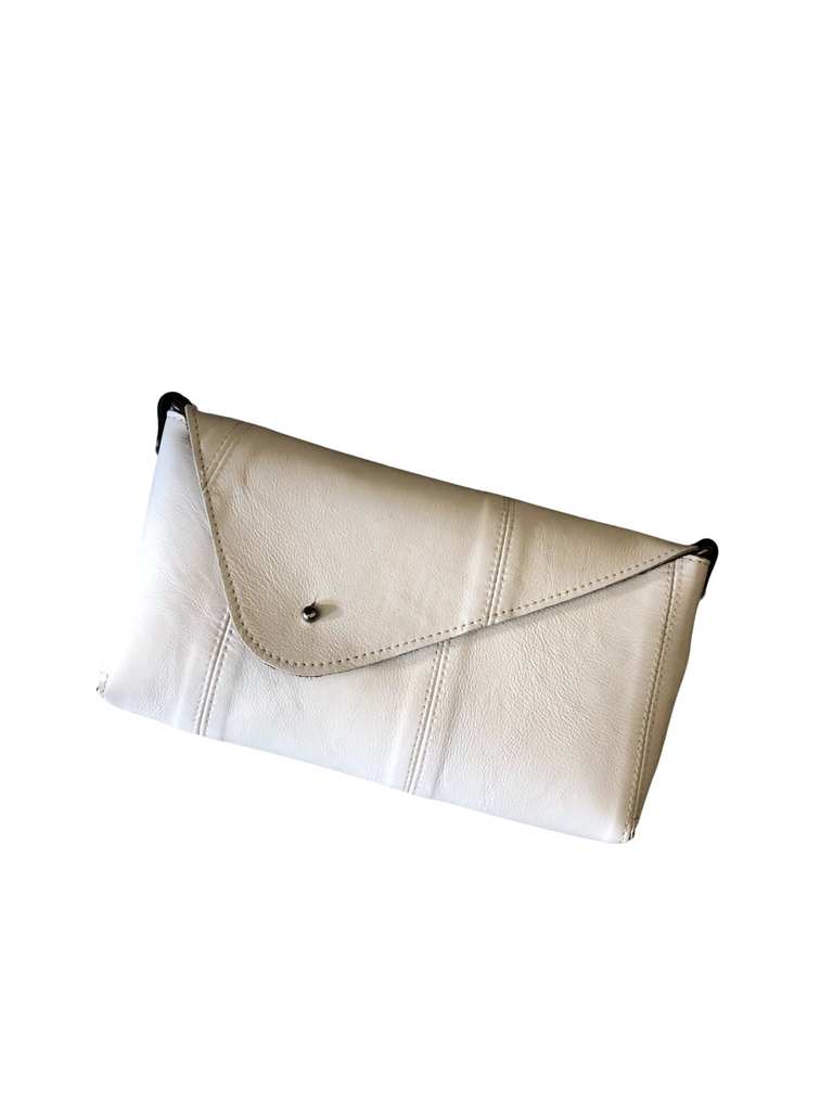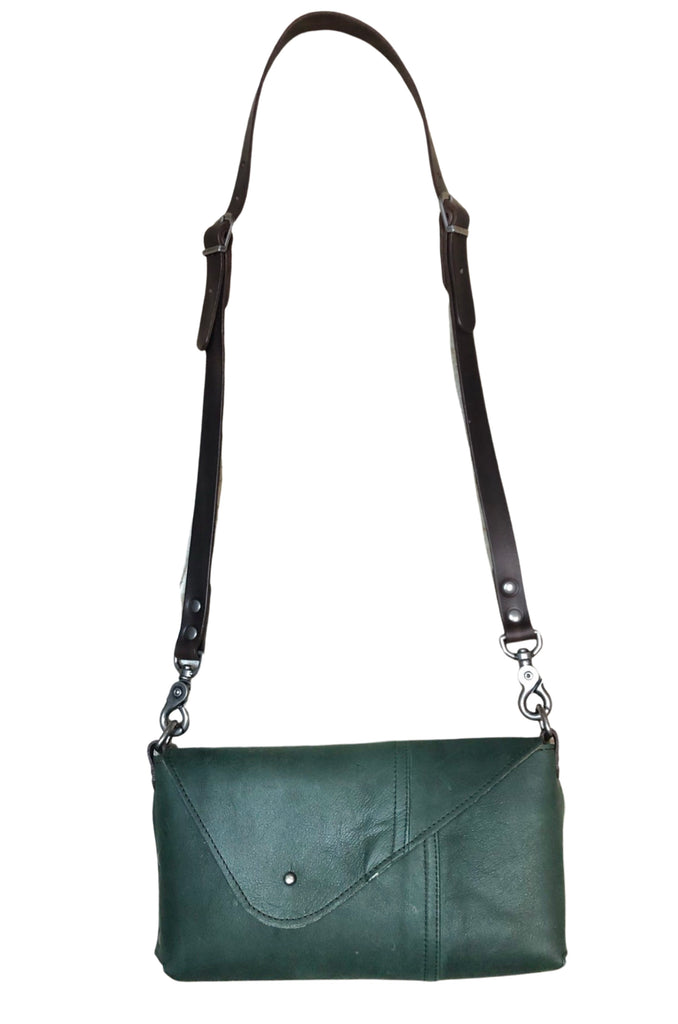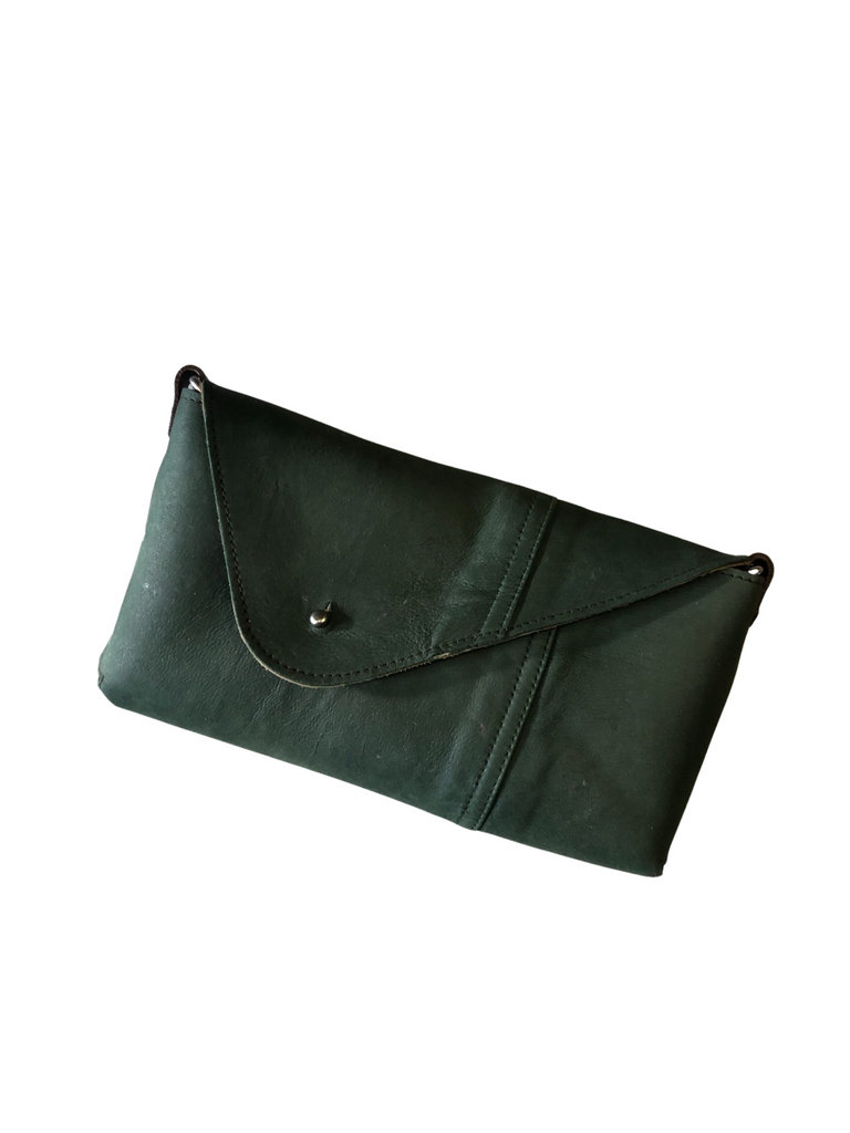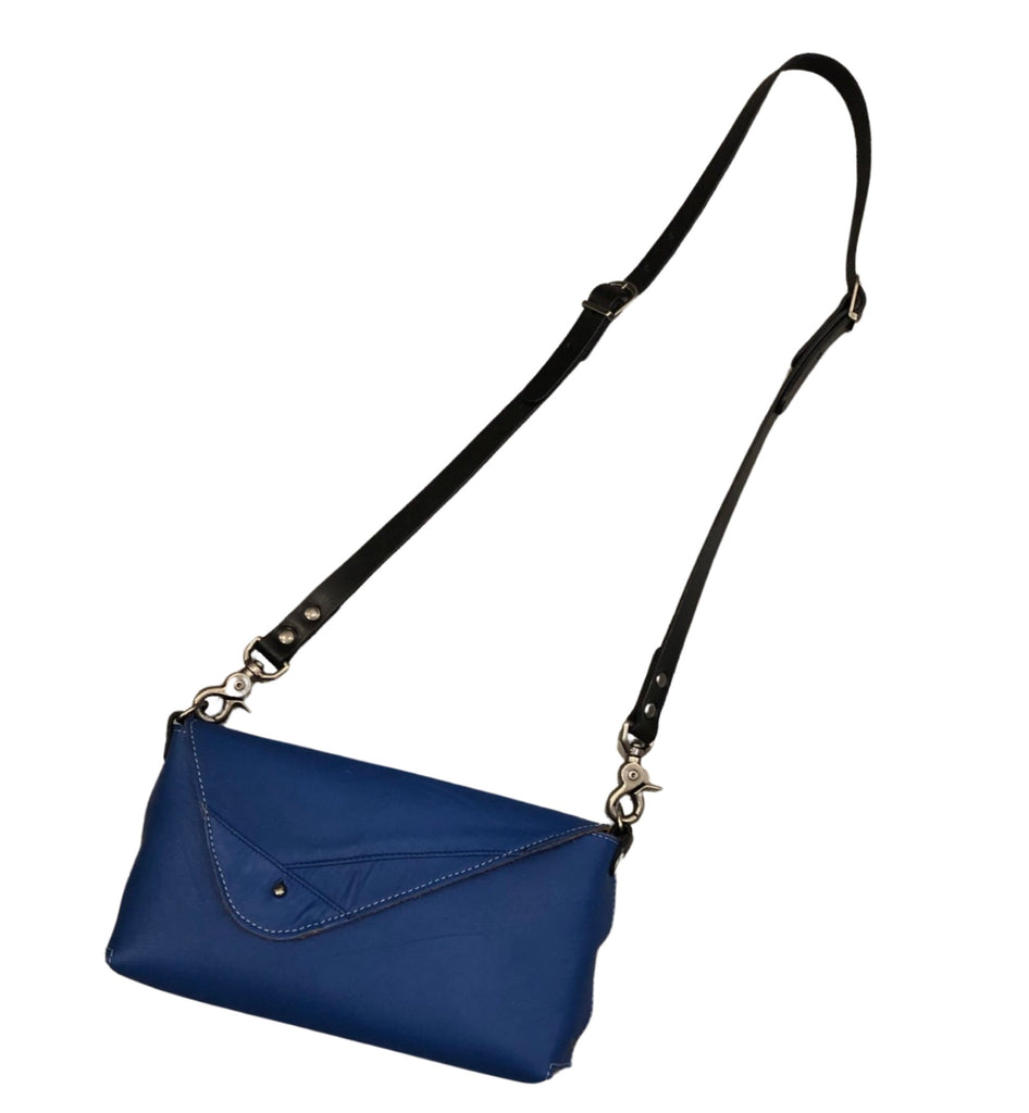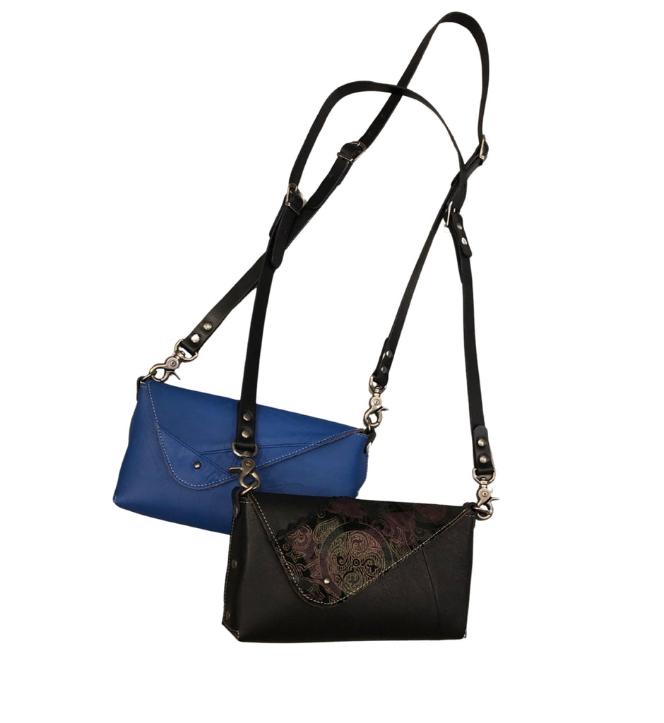 Our asymmetrical clutch made from vintage leather jackets. lined, detachable crossbody strap