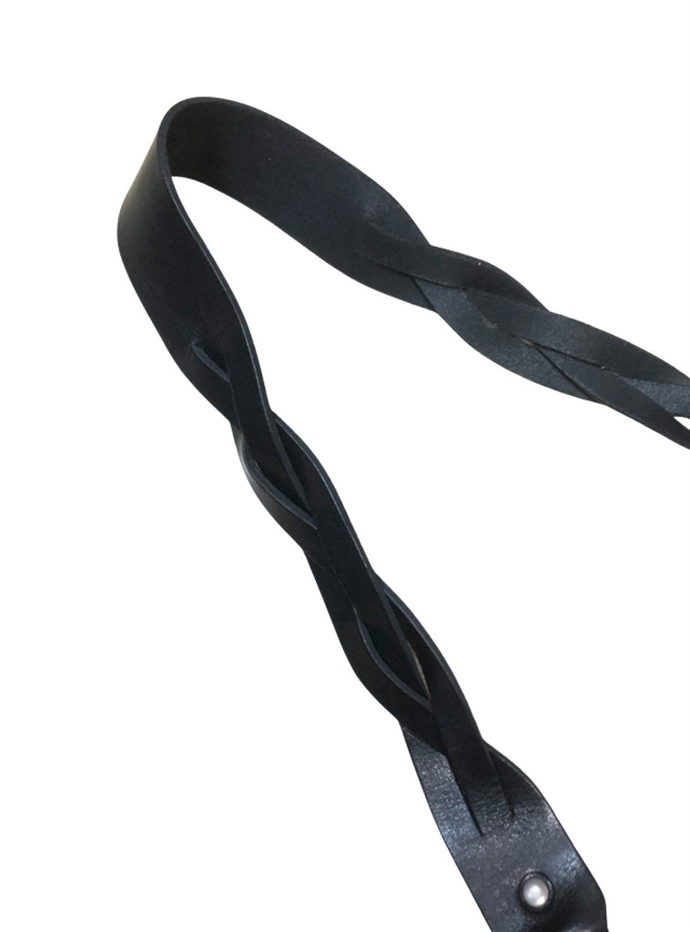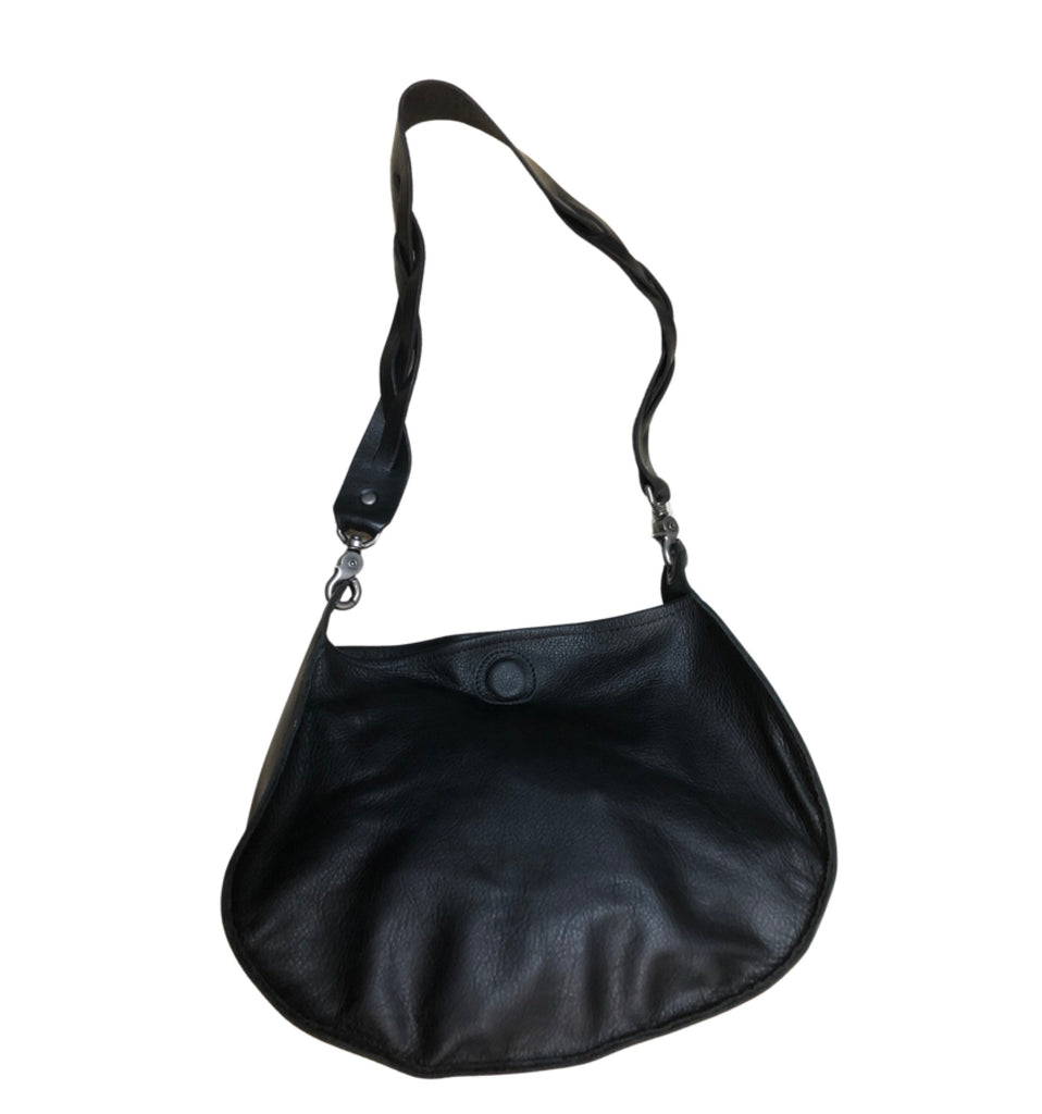 A medium size shoulder bag with magnetic snap closure & braided shoulder strap.