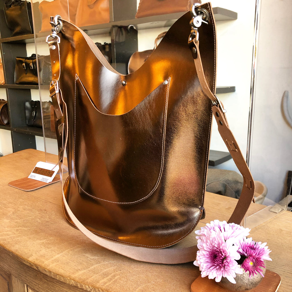 14x15x6 Two large pockets, one interior, the other is external. The strap is 2” wide and adjustable from 36-44”