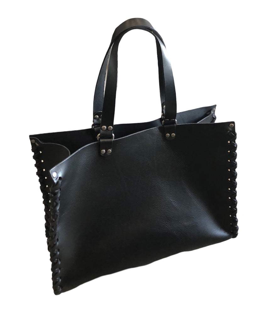 A multi-purpose vintage inspired hand stitch tote made with a very durable latigo leather.