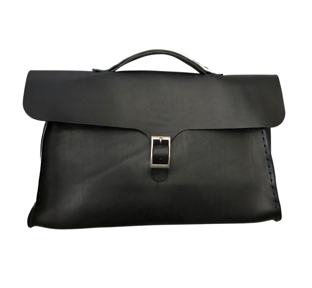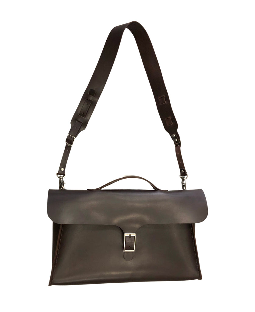 Hand stitched from a single piece of leather. Perfect for a laptop, a tablet and paperwork. Comes with a detachable shoulder strap. 18x12x3
