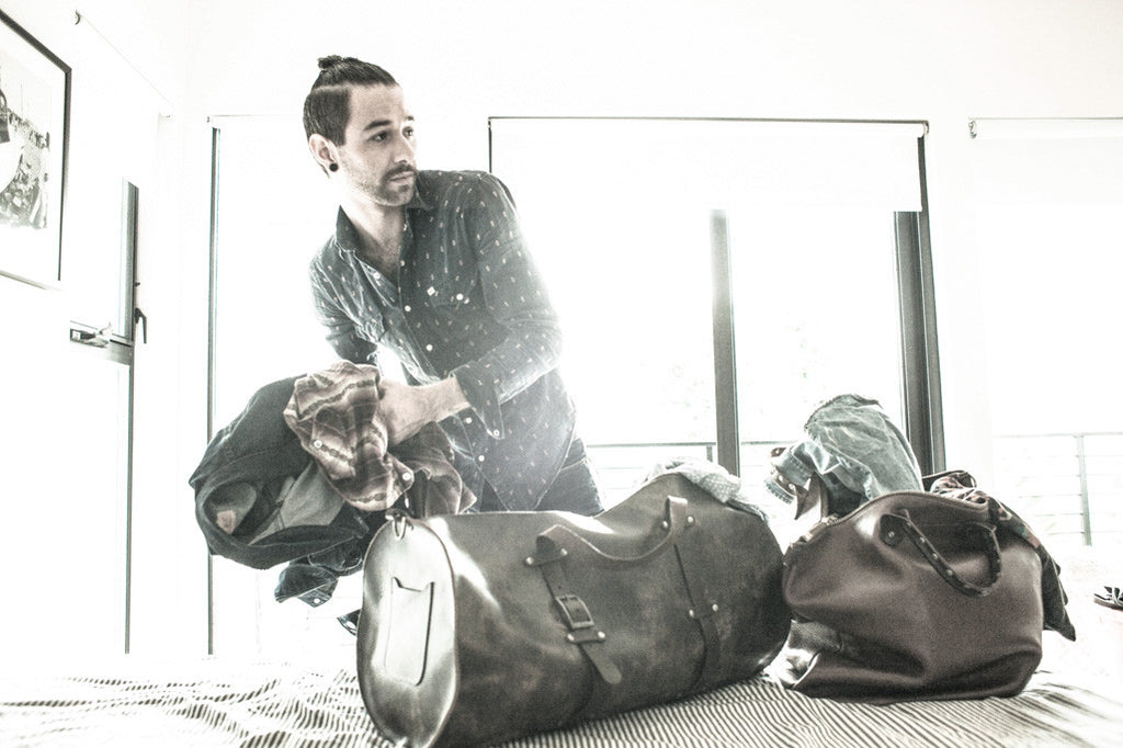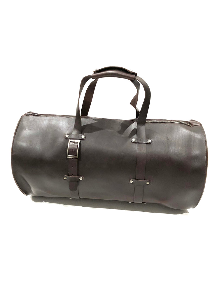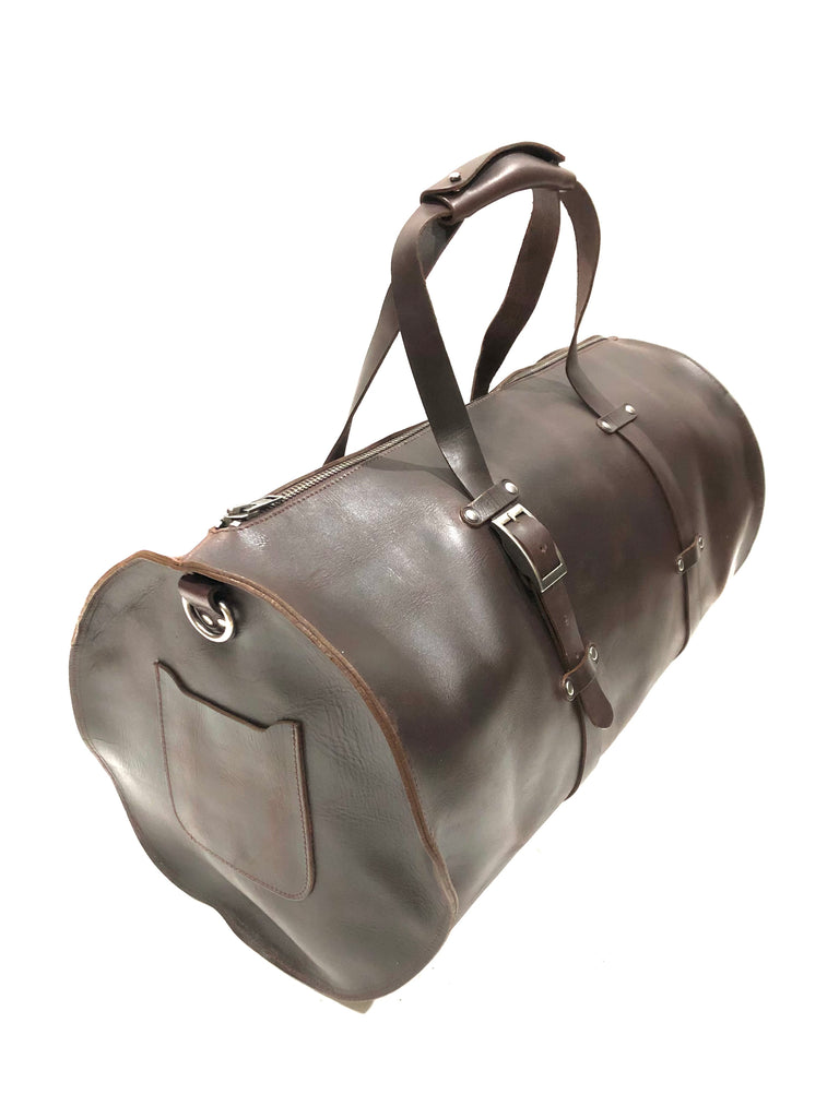 Large duffle bag with adjustable handle straps and detachable shoulder strap. Two side pockets.