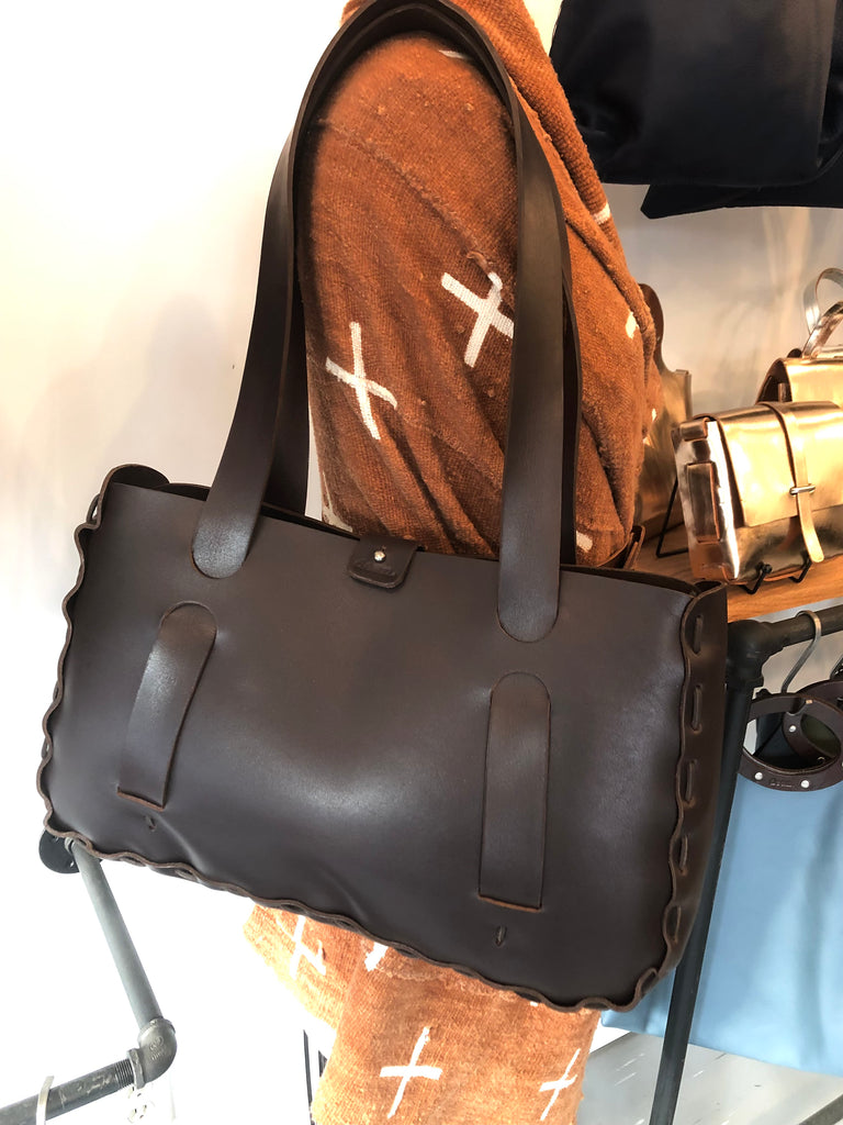 The original whipstitched tote. Inspired by the handcrafted bags of the early 1970’s. Hand cut & hand-stitched from 6oz latigo leather. Made to use & to last.
