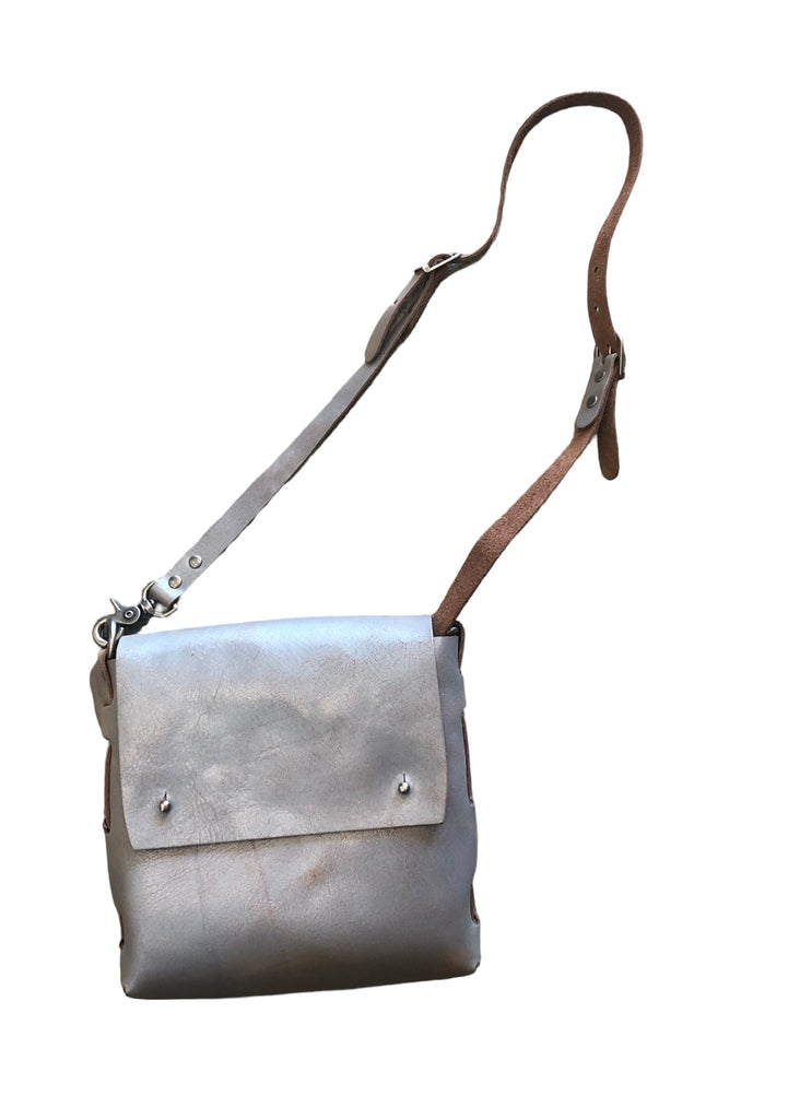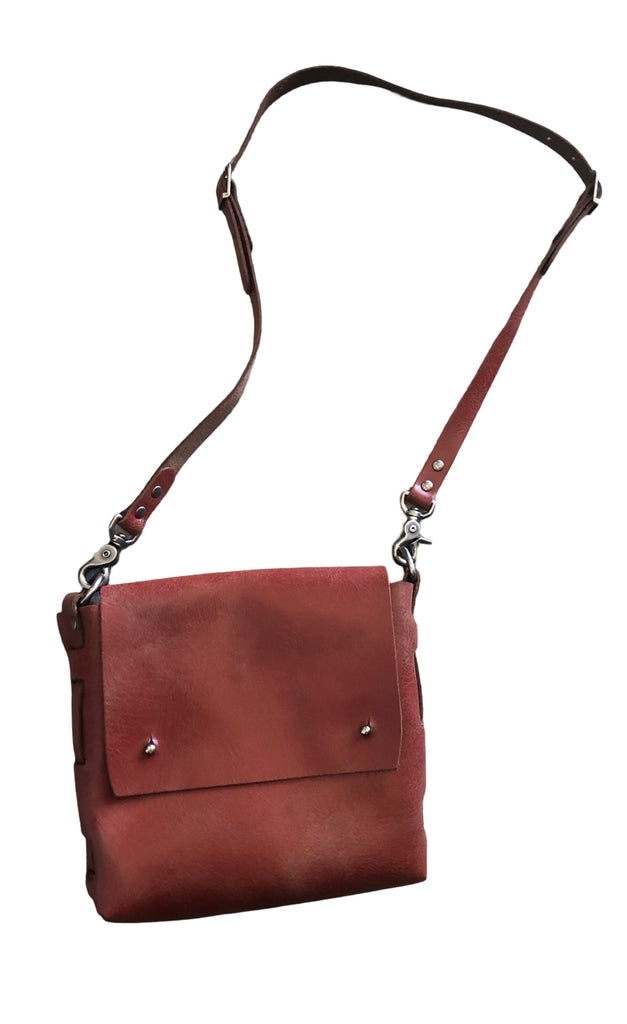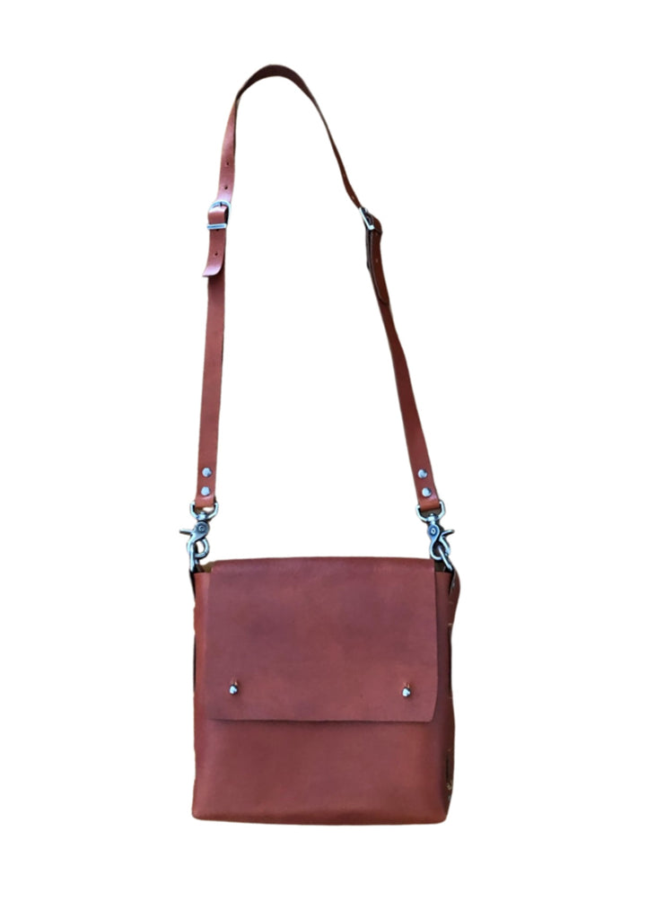 A perfect midsized, daily crossbody bag. Large interior pocket & adjustable shoulder strap. Ball & post closure