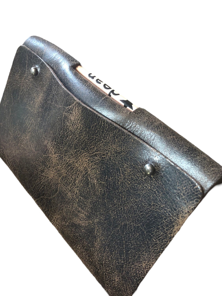 A heavy latigo cover for a 8.5x5 journal with a pencil/pen slot. Comes with journal and a pencil.  9x6in