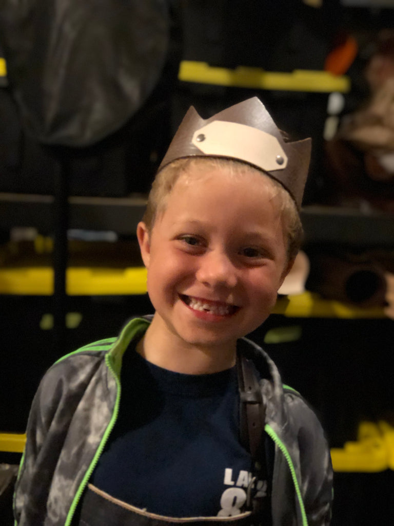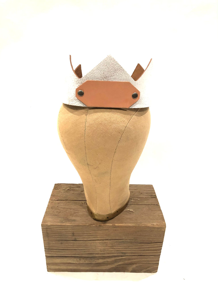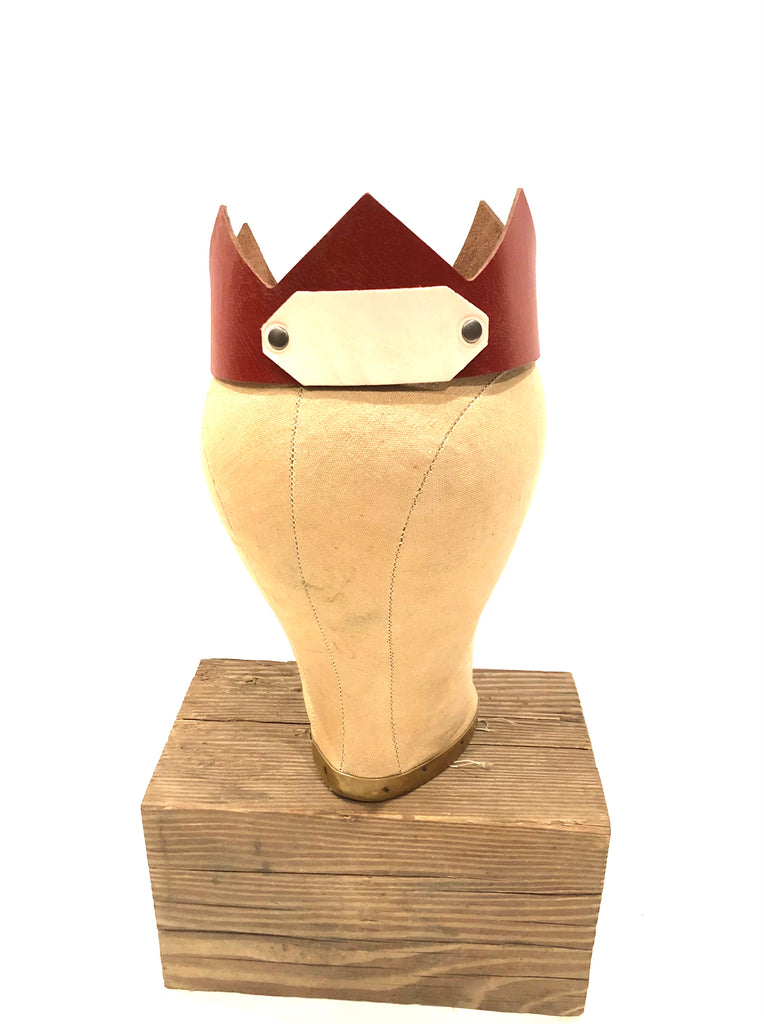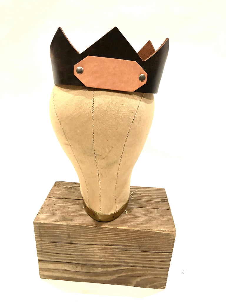 A super durable leather play crown. Has a blank badge space in front for personalization. We can stamp initials or a short name (spacing for 5 letters)  or a gel pen also works great.